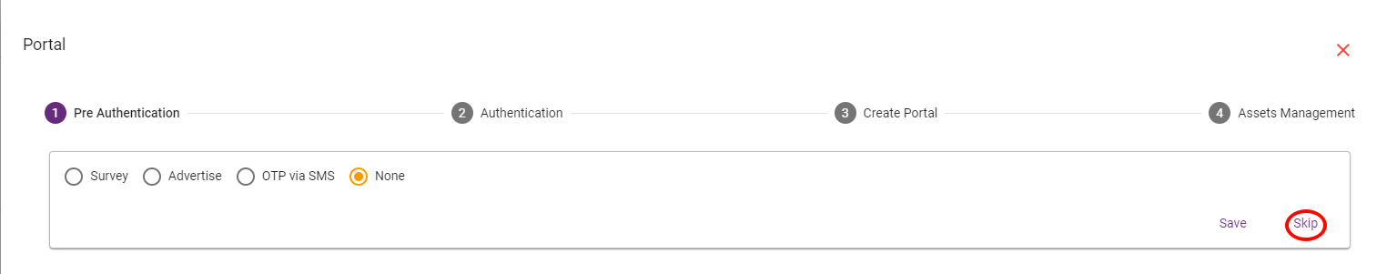 - On the Pre-Authentication tab, click on Skip to bypass any additional pre-authentication configurations.