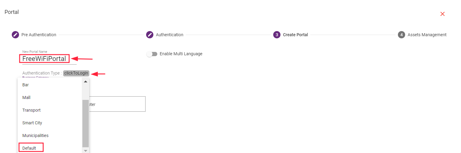 - Assign an appropriate name for the Captive Portal. This name will help you identify the portal for future management or updates.