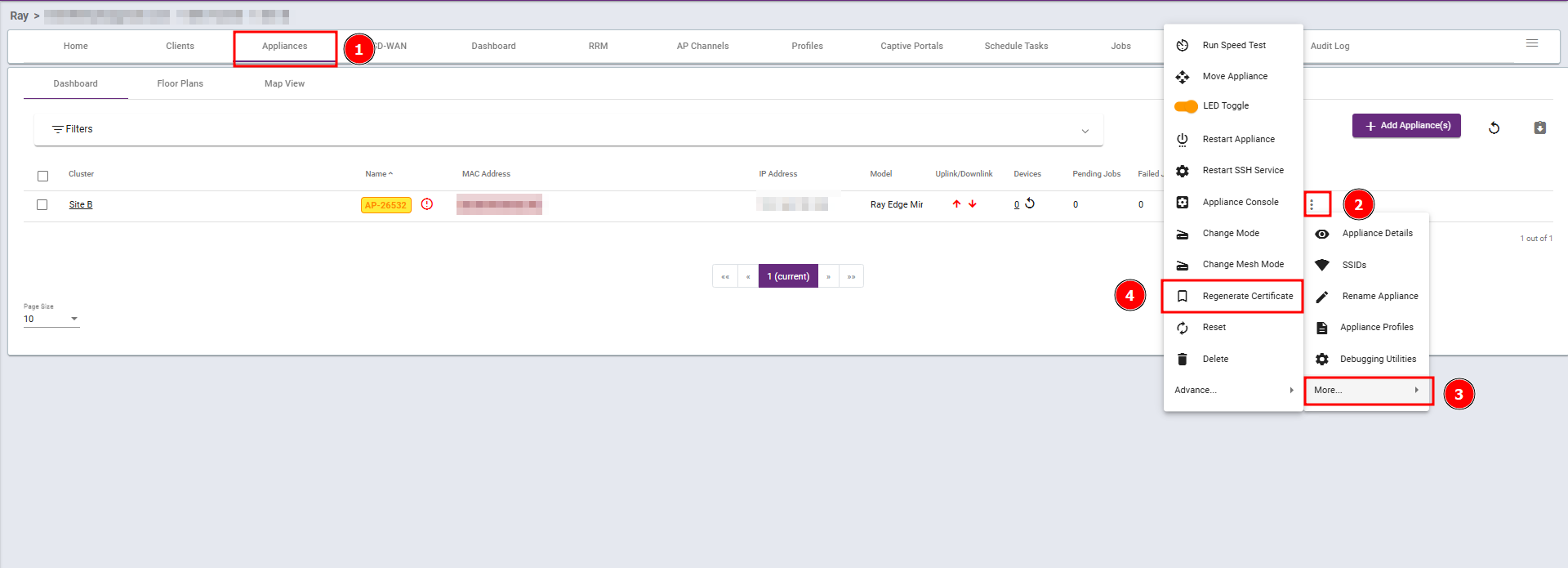 Steps 1: Navigate to the Appliances section, select Regenrate Certificate.