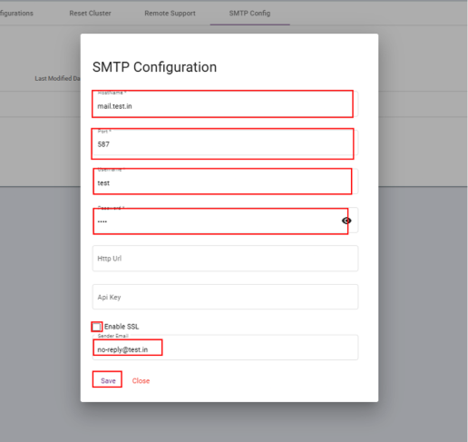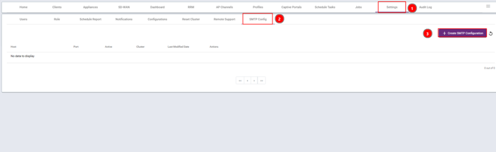 In cluster, go to > settings > SMTP Config > Create SMTP Configuration