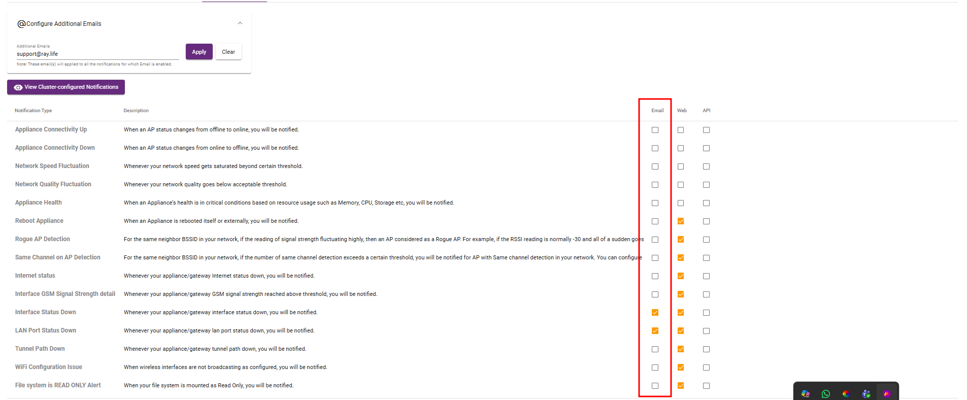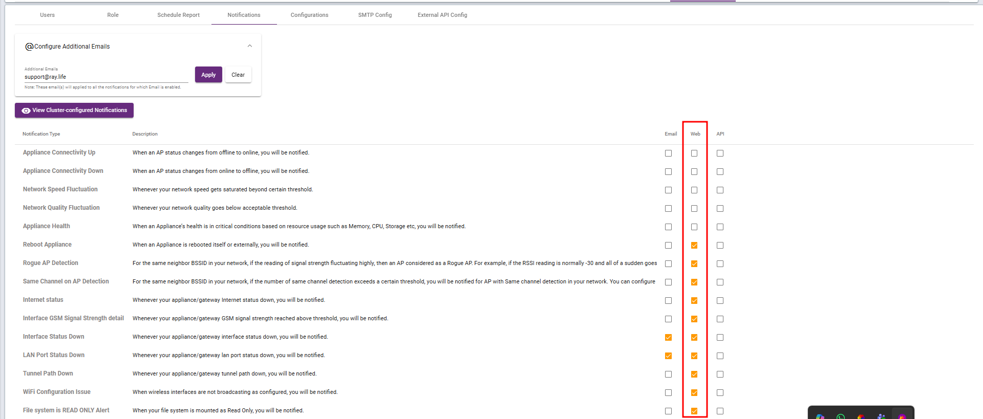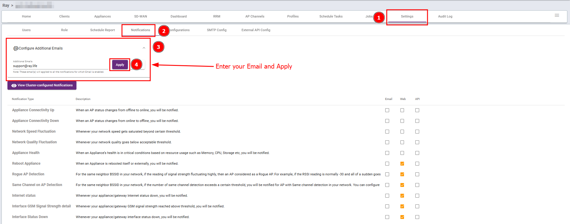 Steps: Go to Settings → Notifications select Web, choose the required checkboxes to enable web notifications, and receive these notifications on the RAY controller.