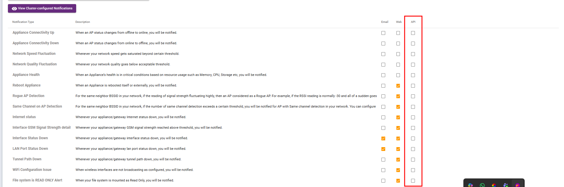 Typesof notification via Email, Web and API