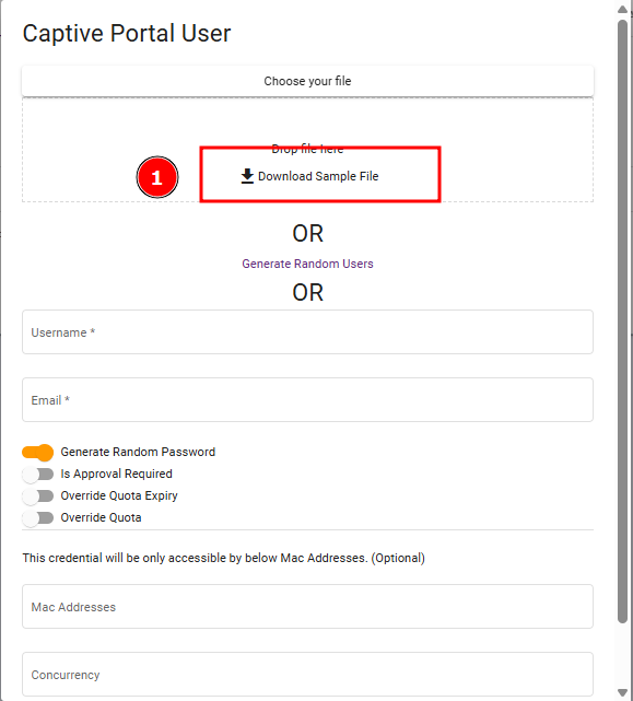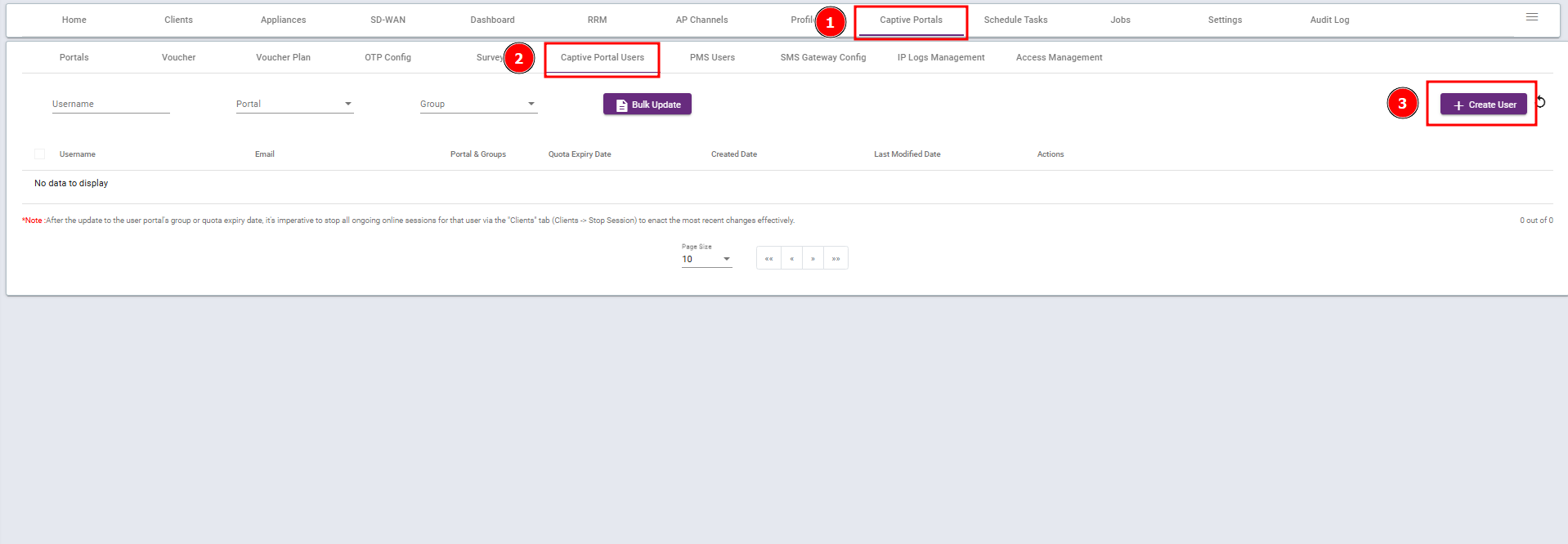 Step 1: Go to Captive portal,Select captive portal users and Create User