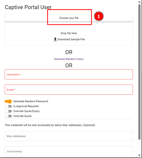 Step 4 : After filling the necessary details save the file and upload that file in the captive portal page by clicking choose your file.